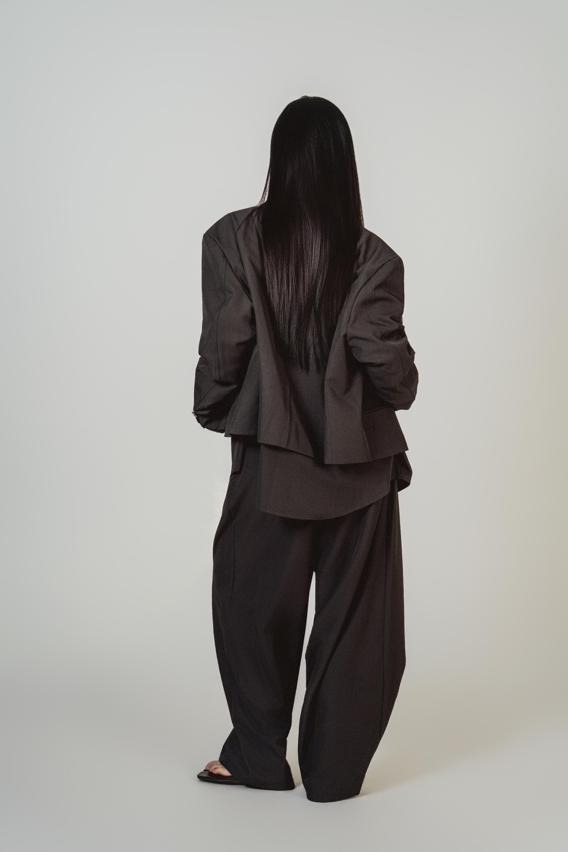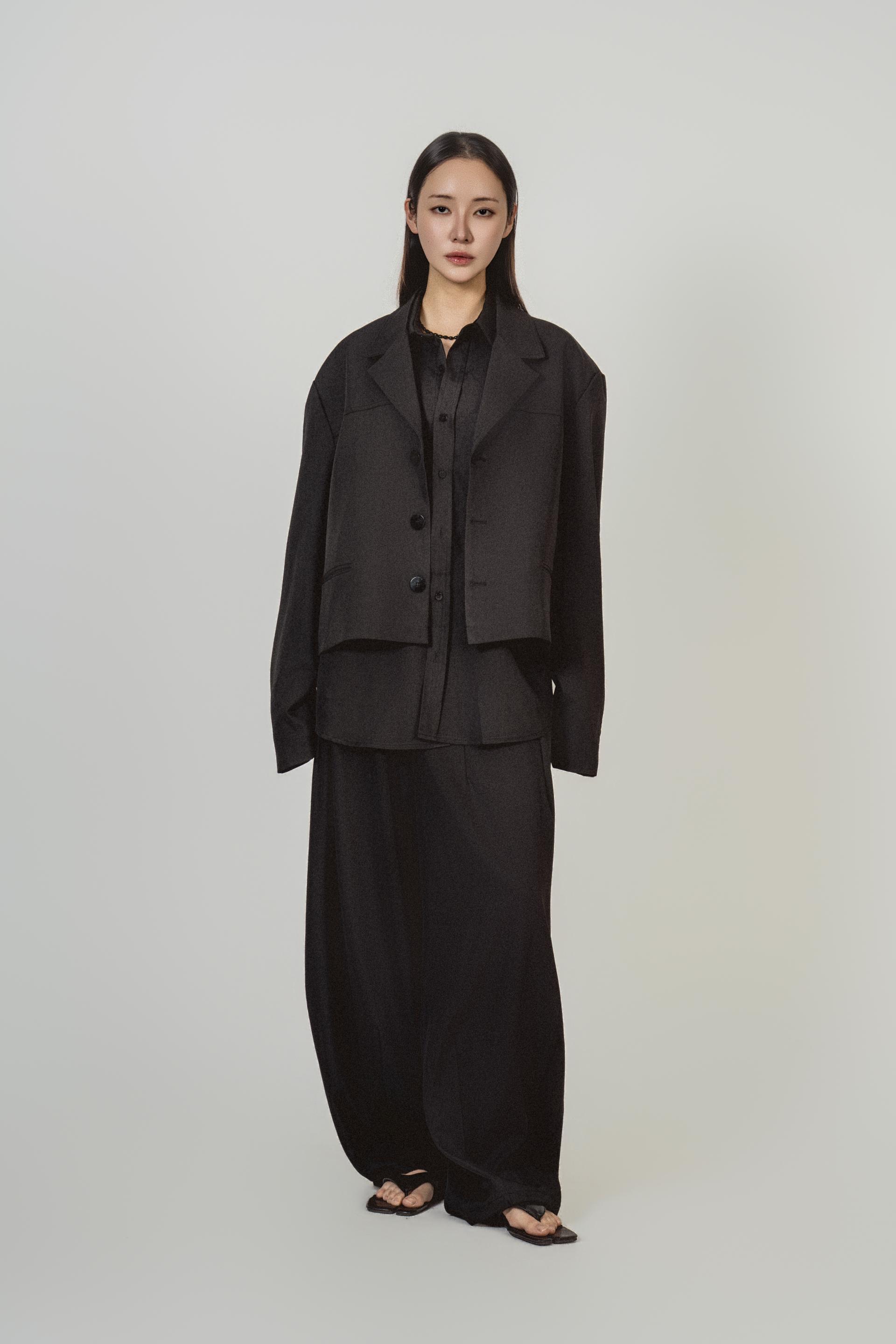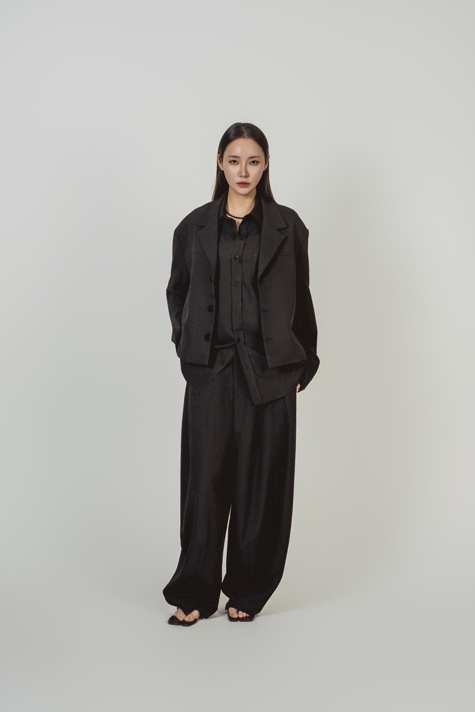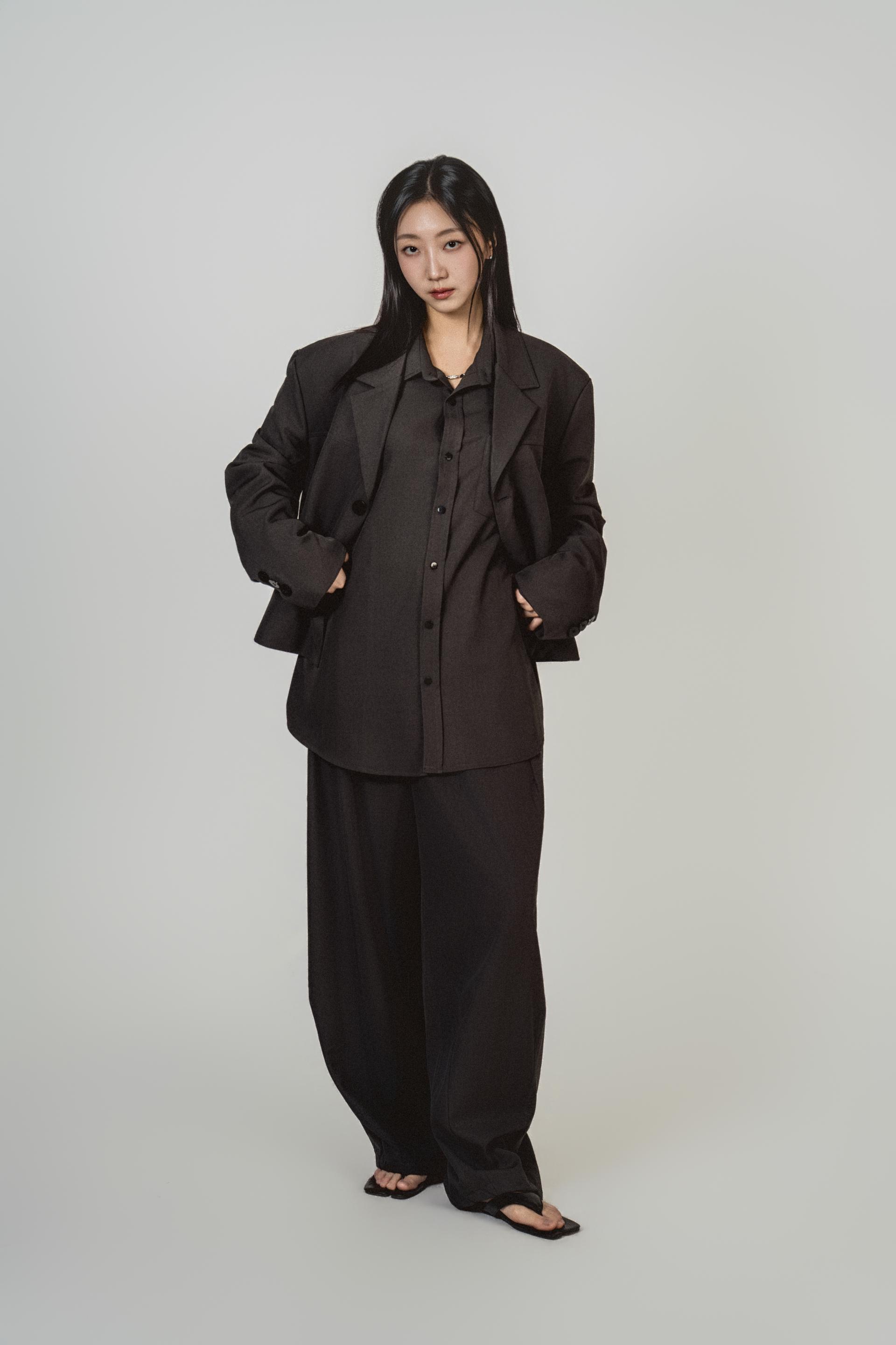 • 자켓+셔츠+와이드 팬츠가 한 번에 완성되는 쓰리피스 구성으로, 레이어드의 깊이를 살린 셋업입니다.