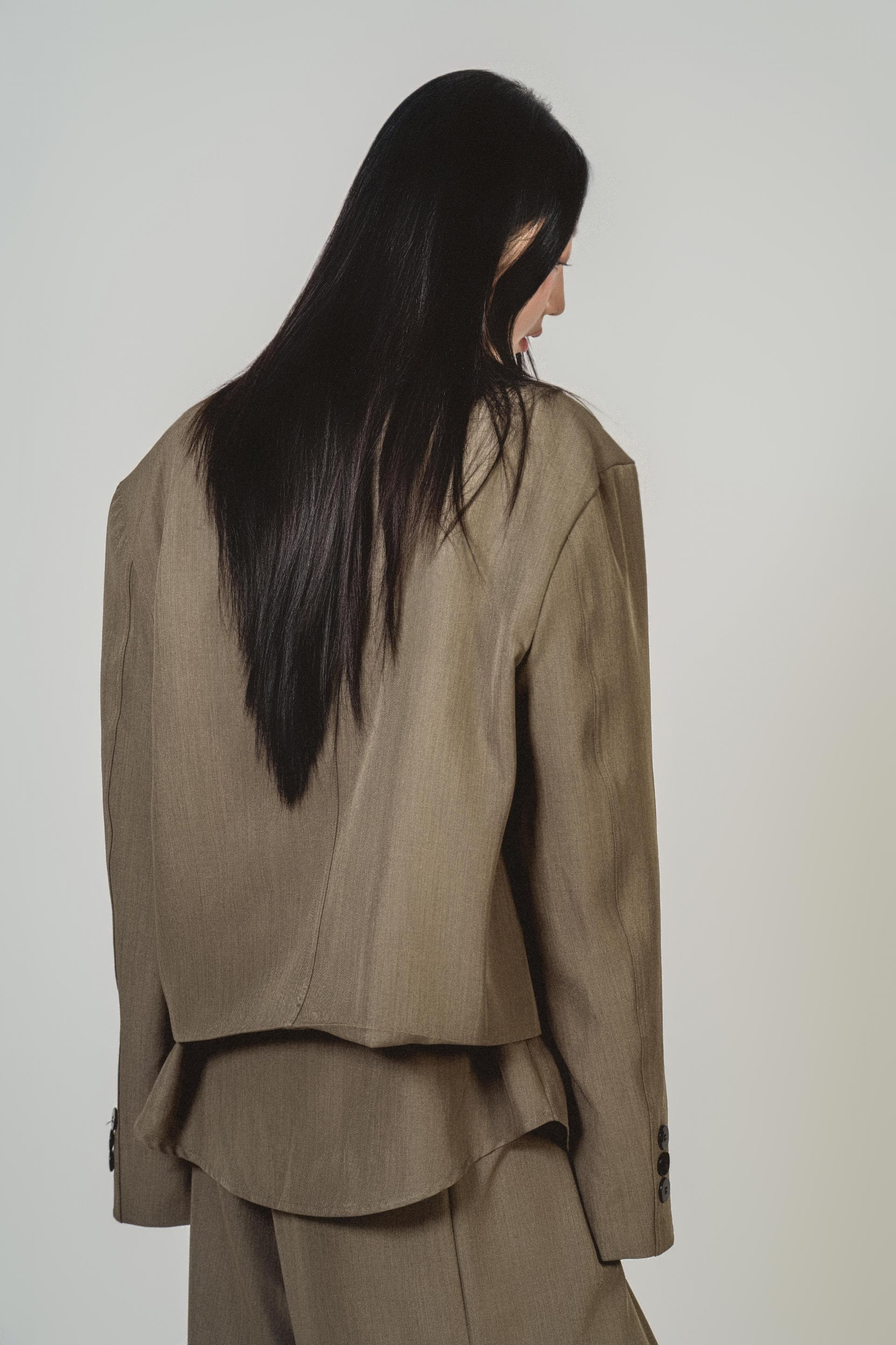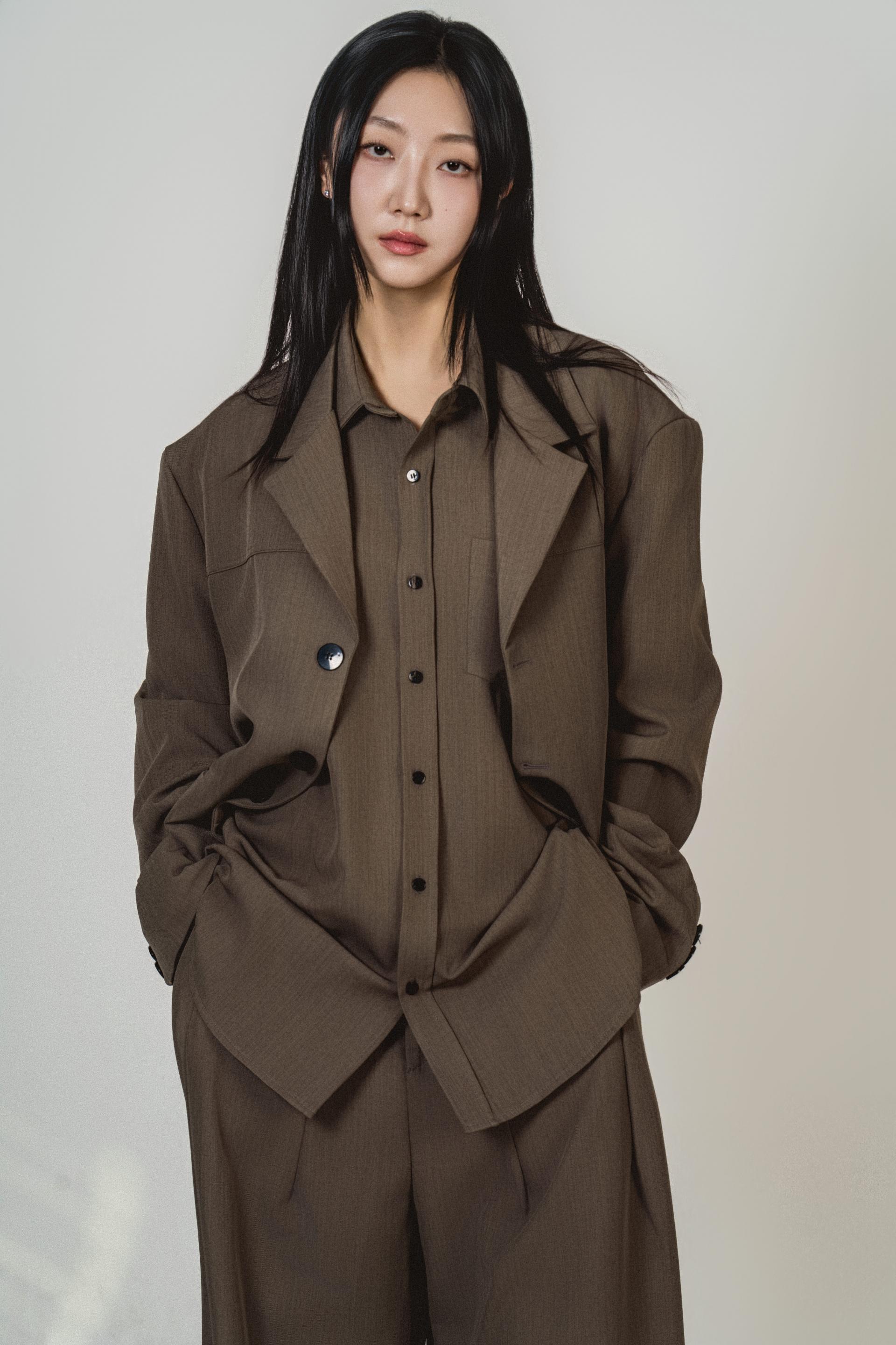 • 자켓의 단정한 라펠과 셔츠의 길이감이 대비를 만들어, 단순한 셋업과 달리 ‘레이어 구조’가 포인트로 남습니다.