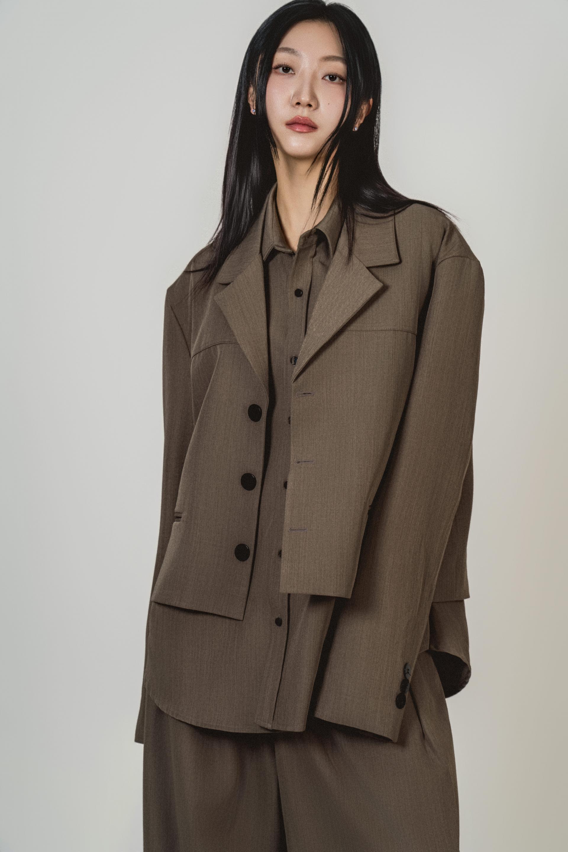 • 자켓은 여유 있는 숄더와 테일러드 라인으로 각을 잡아주고, 셔츠는 길이를 살려 자연스럽게 레이어가 드러납니다.