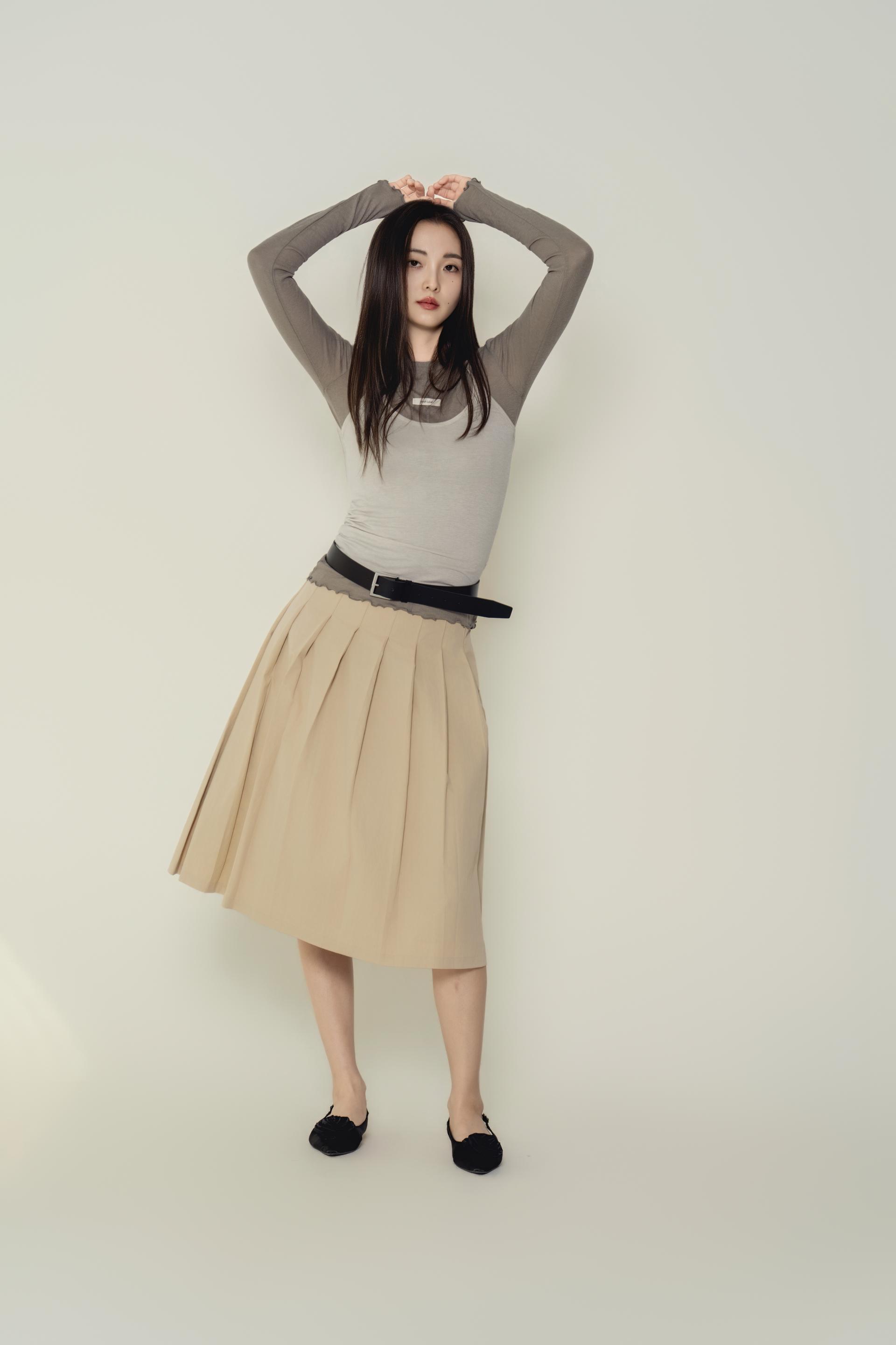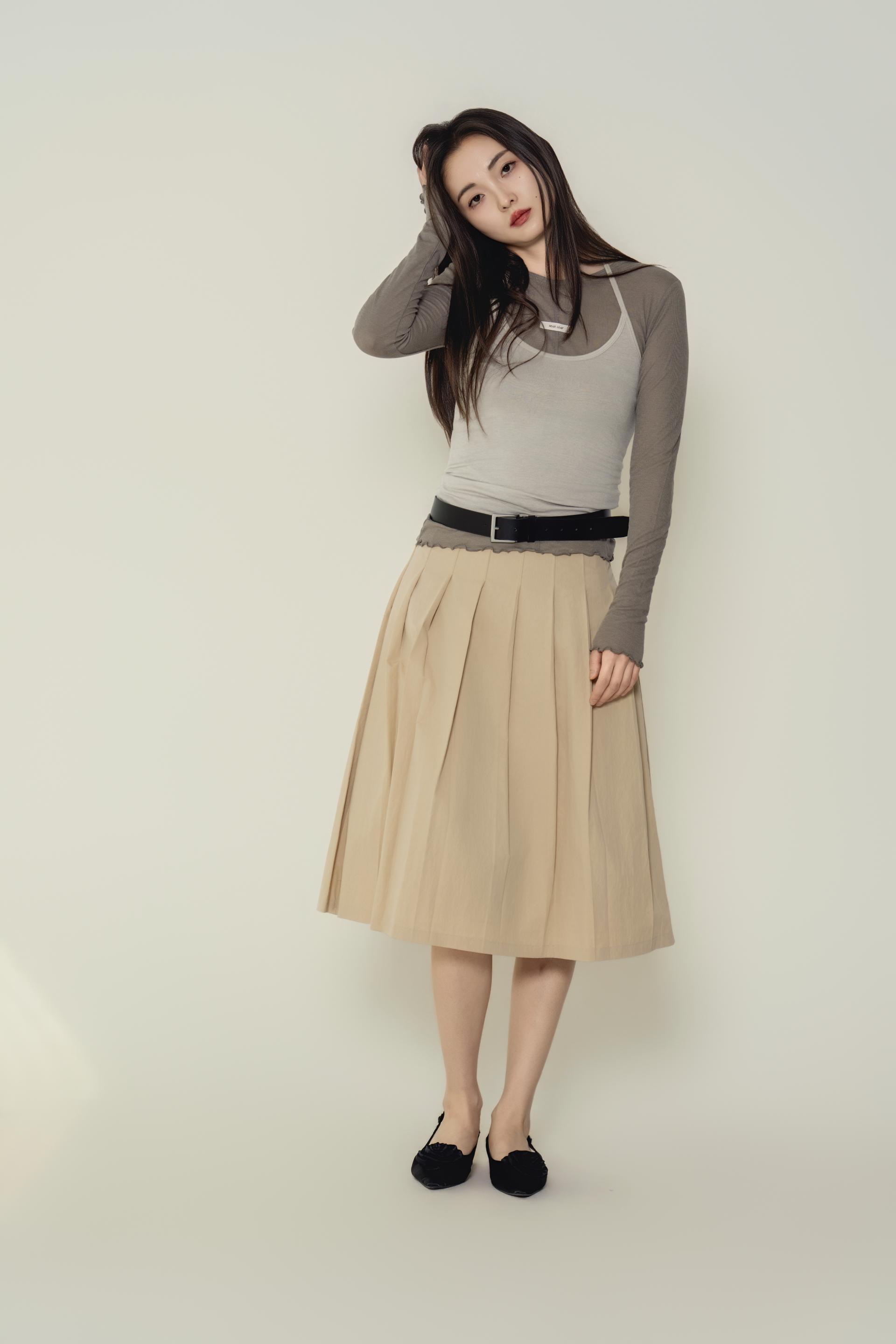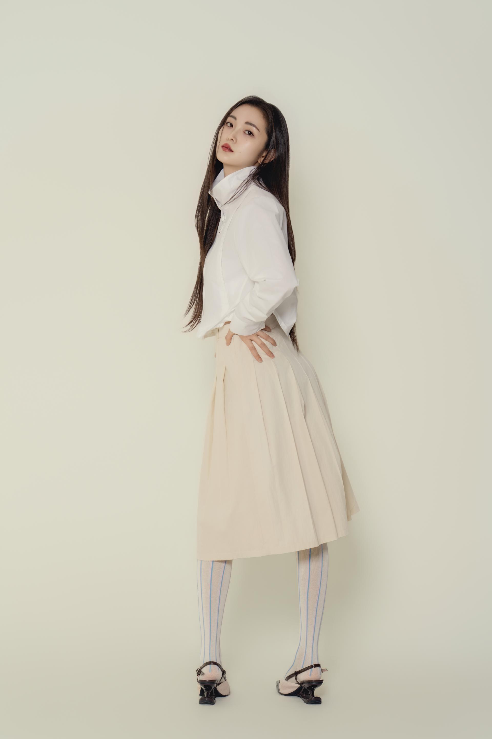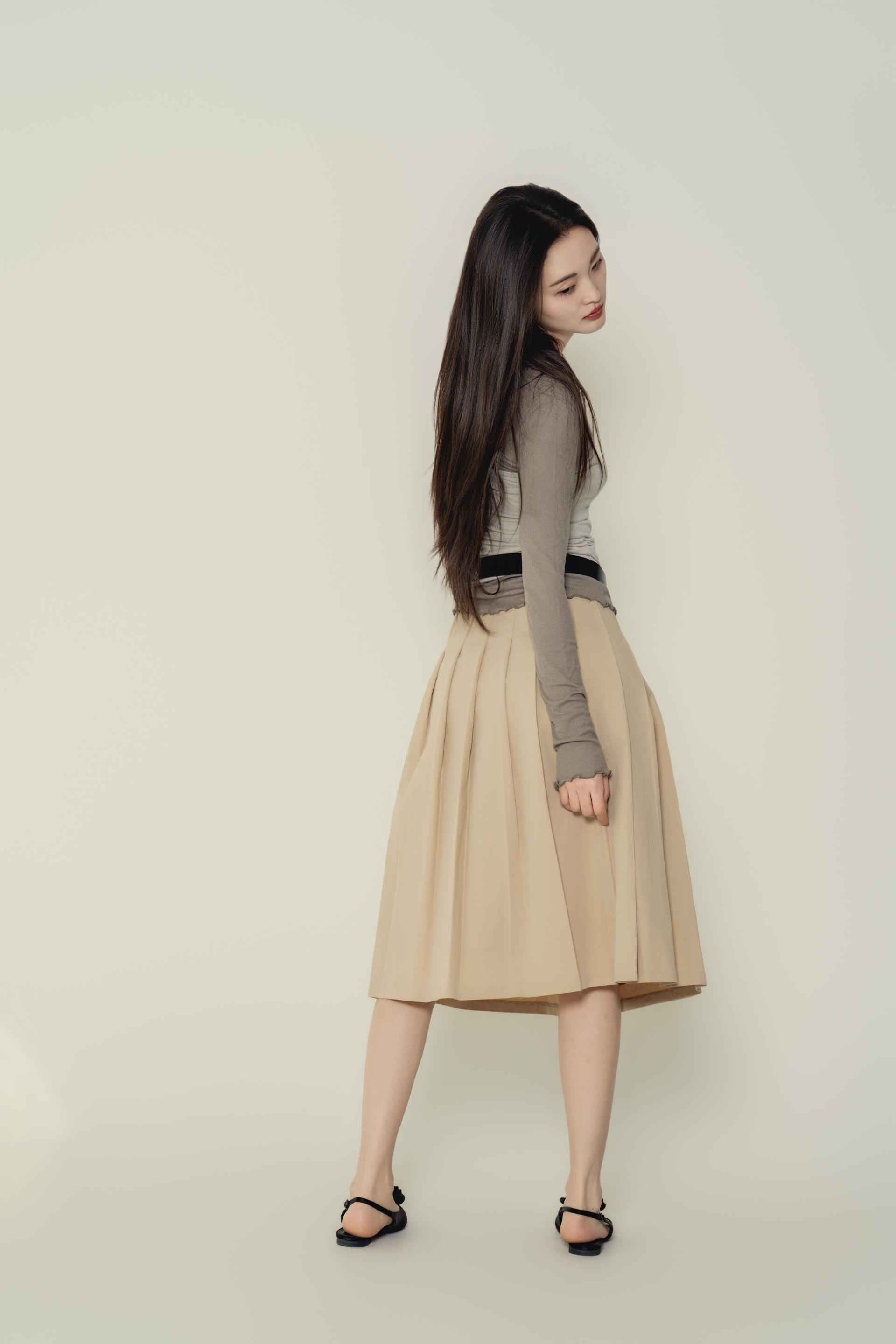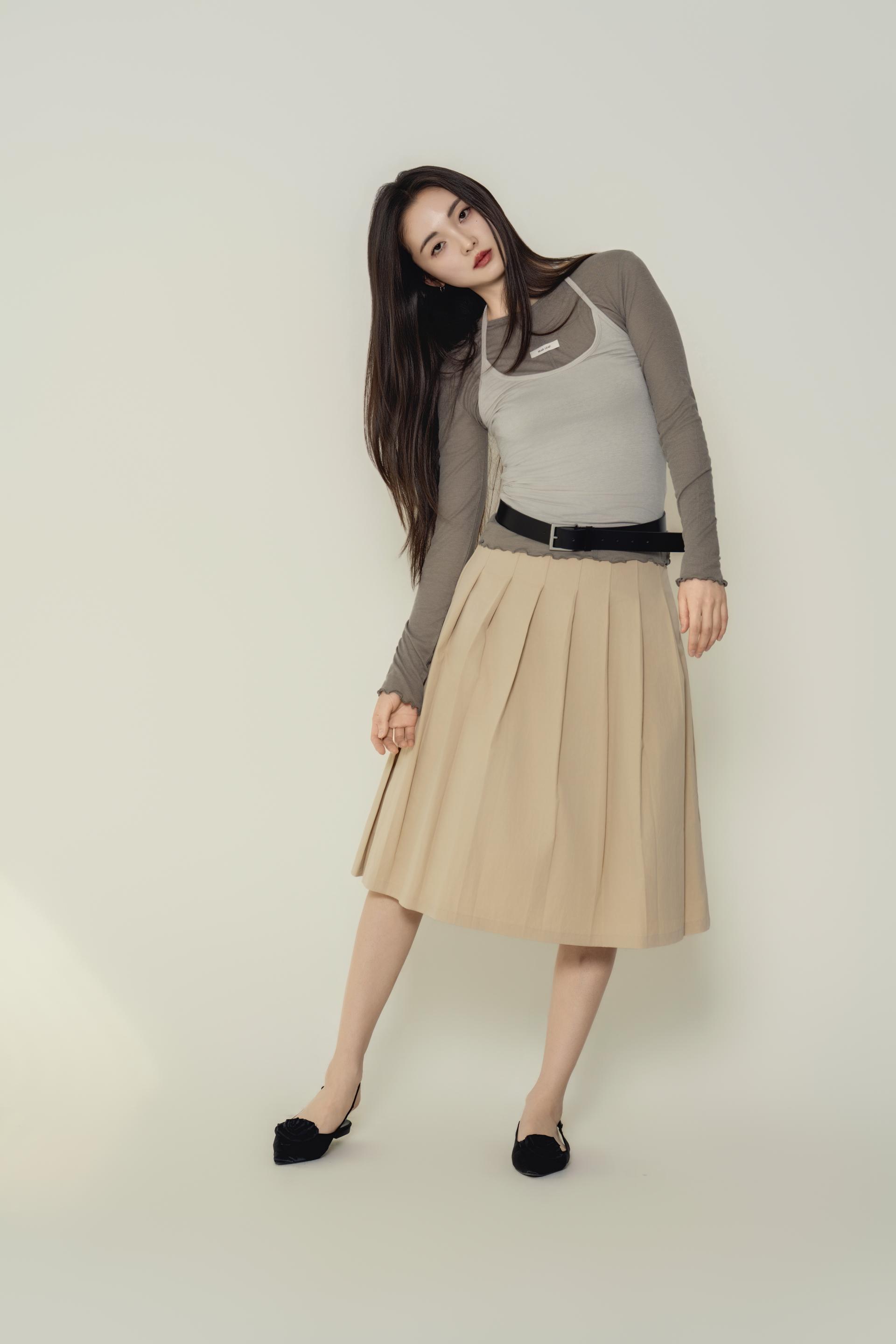• 움직일 때 플리츠가 자연스럽게 벌어졌다가 다시 모이며, A라인 실루엣이 과하지 않게 볼륨을 만들어줍니다.
