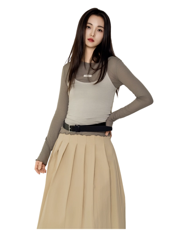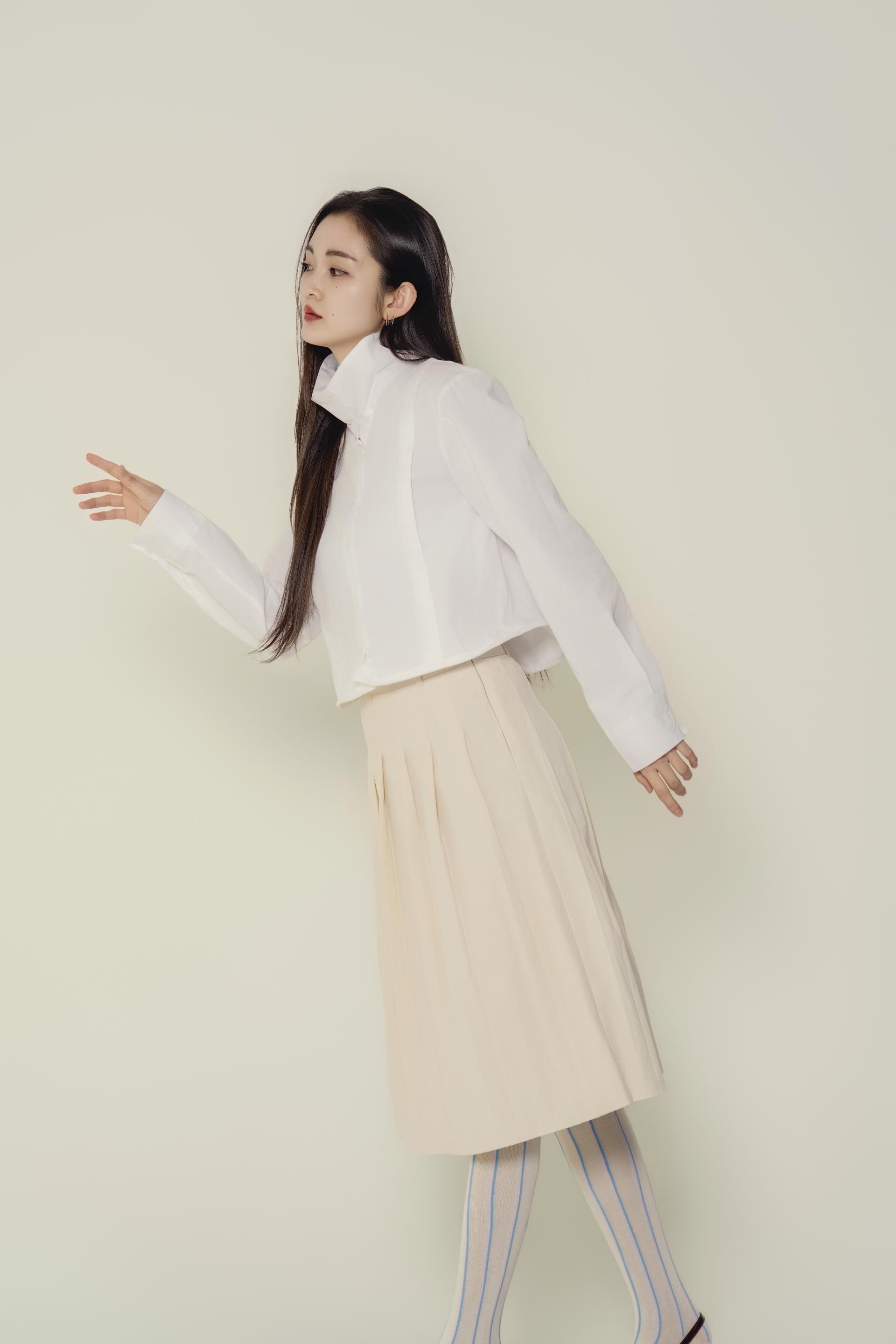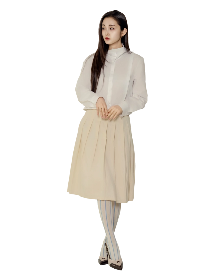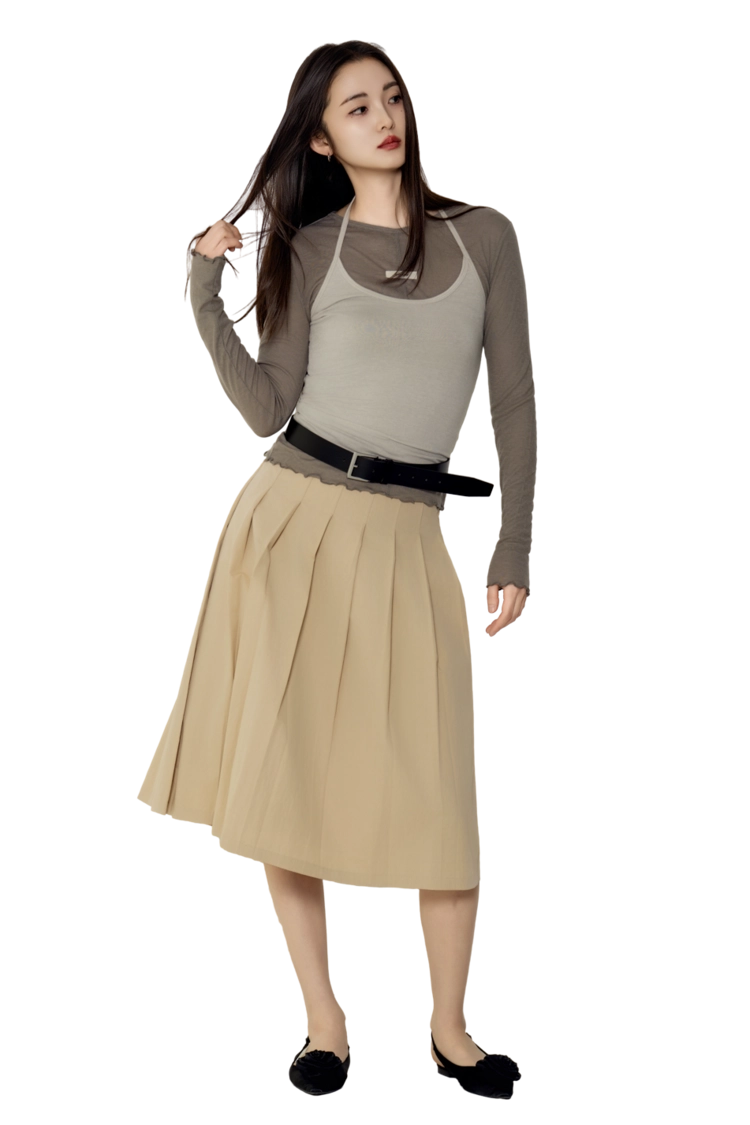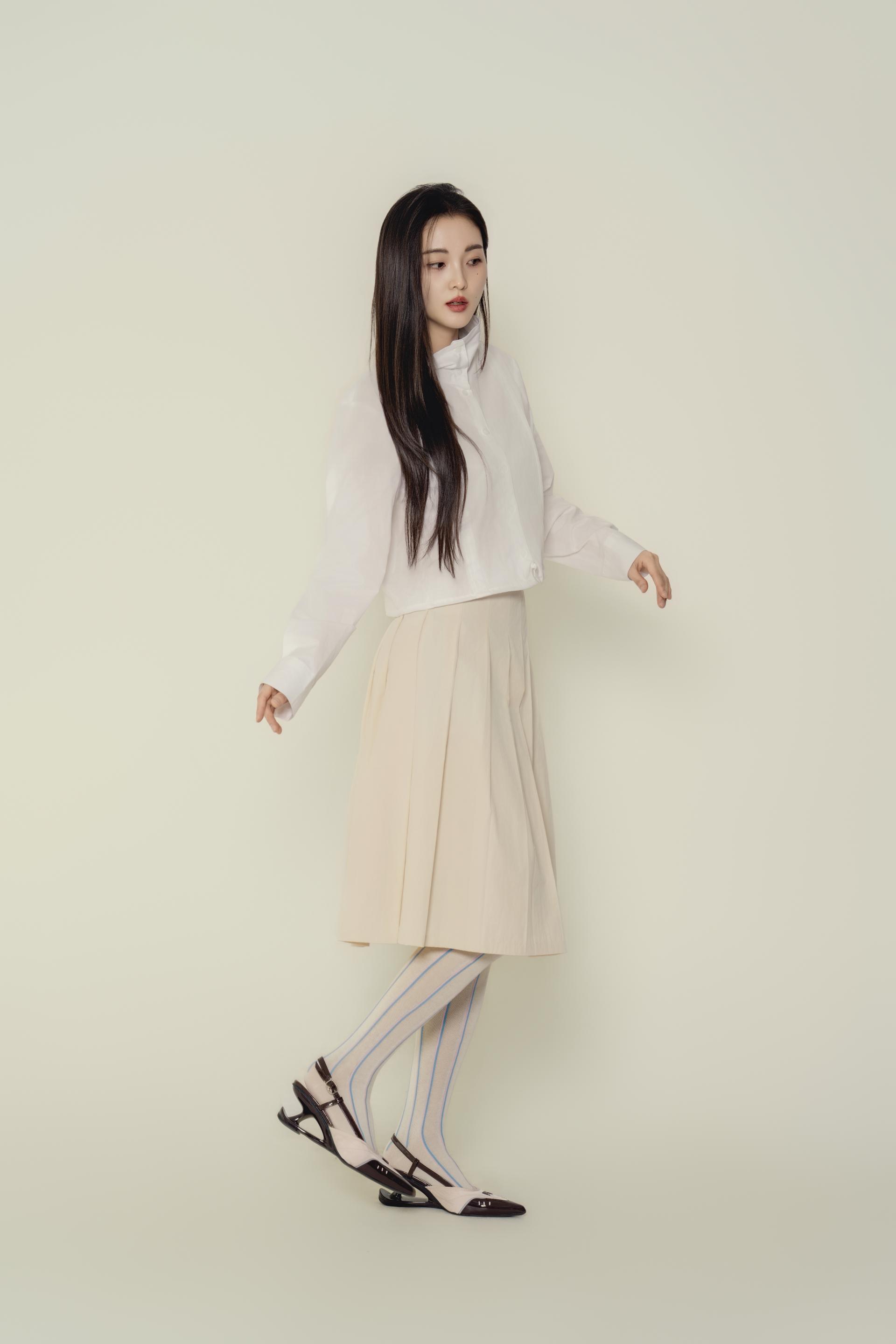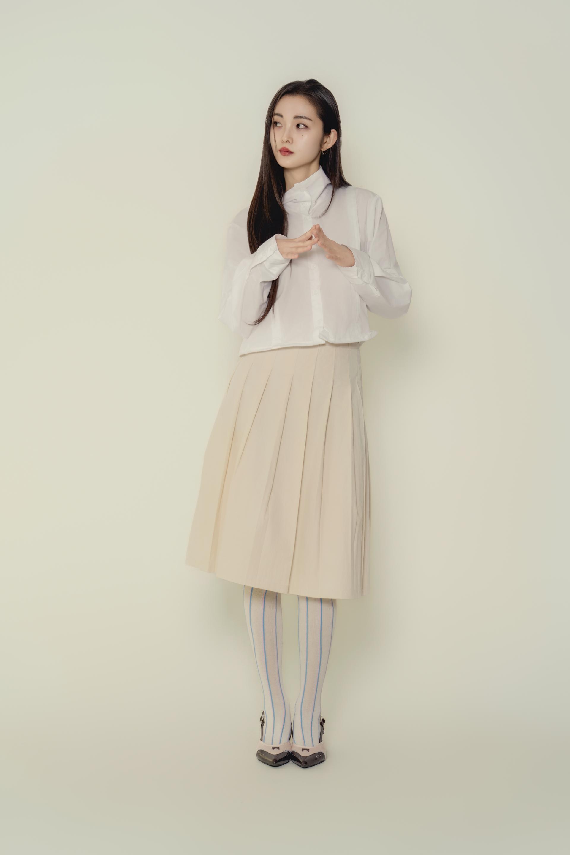 • 움직일 때 플리츠가 자연스럽게 벌어졌다가 다시 모이며, A라인 실루엣이 과하지 않게 볼륨을 만들어줍니다.