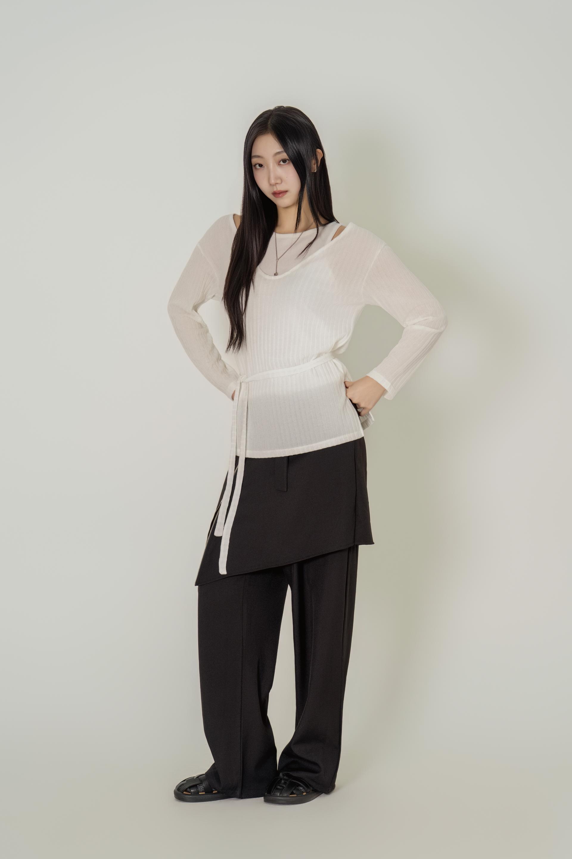 "원숄더가 과하지 않게 떨어져서 데일리로도 충분히 입기 좋았어요. 끈으로 허리 라인을 잡아주면 룩이 또렷해져서 슬랙스나 레이어드 팬츠랑 매치했을 때 특히 예뻤습니다."