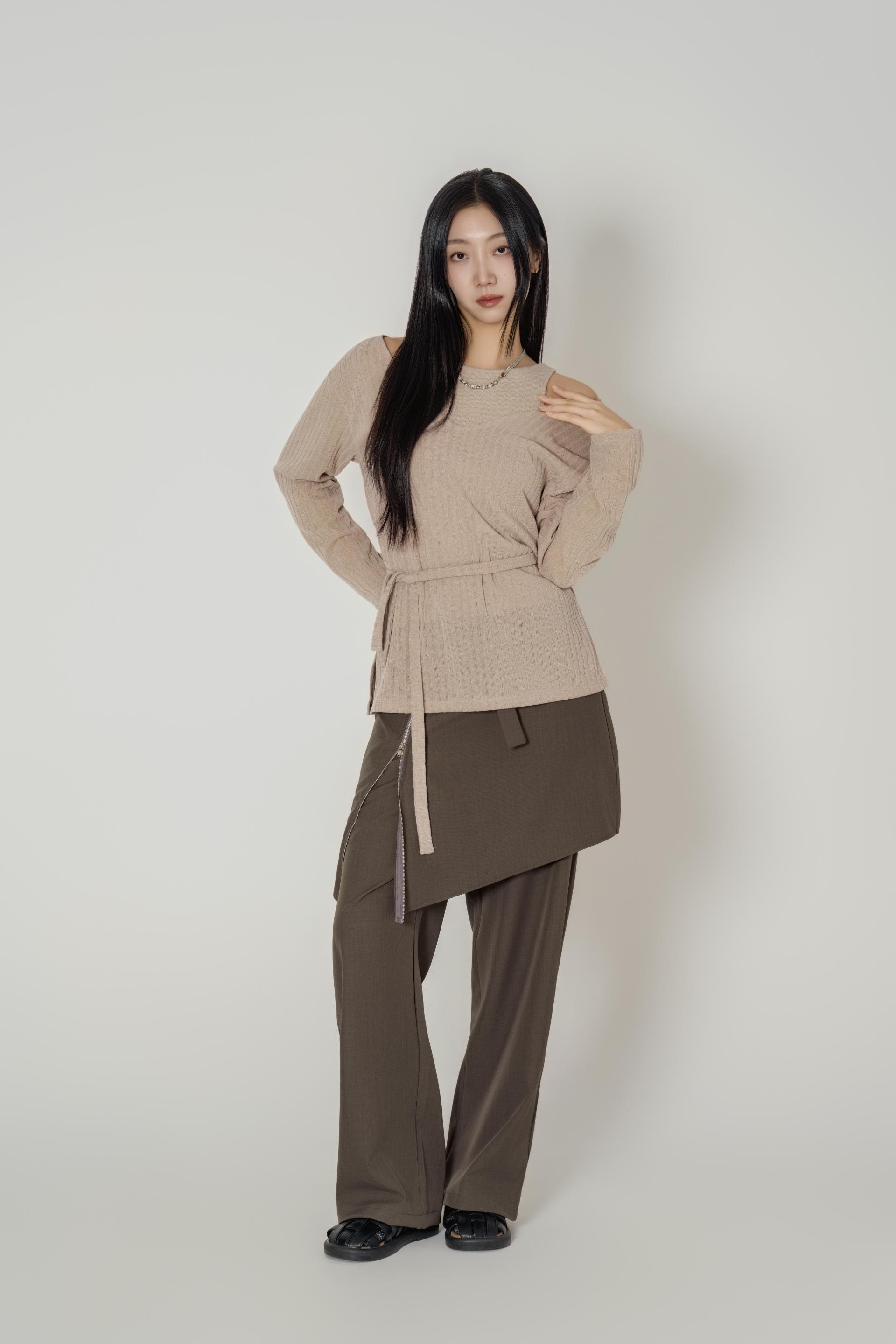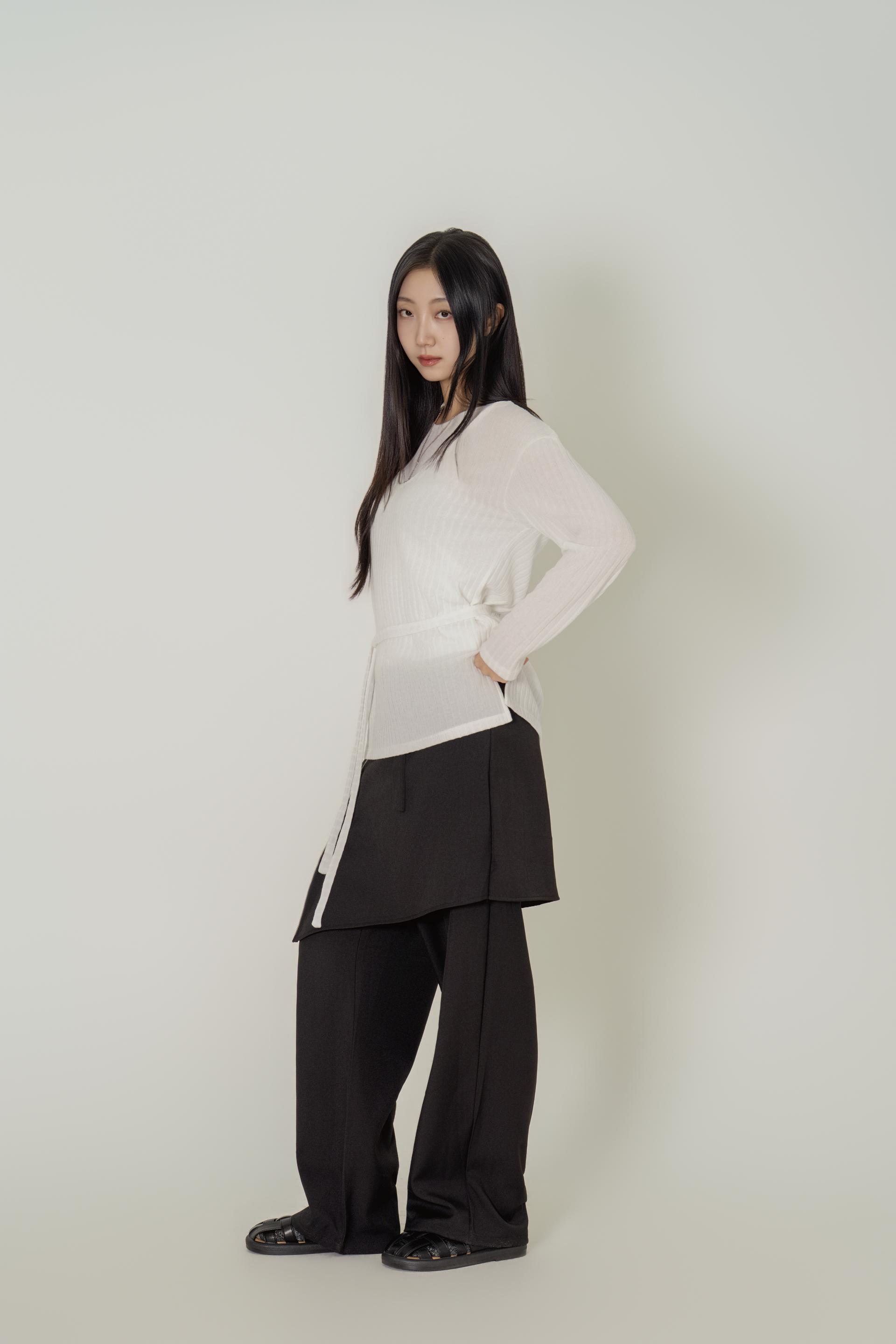 • 허리 스트랩 구성으로 라인 연출이 가능해요. 묶으면 비율이 또렷해지고, 풀면 루즈하게 떨어져 무드가 달라집니다.